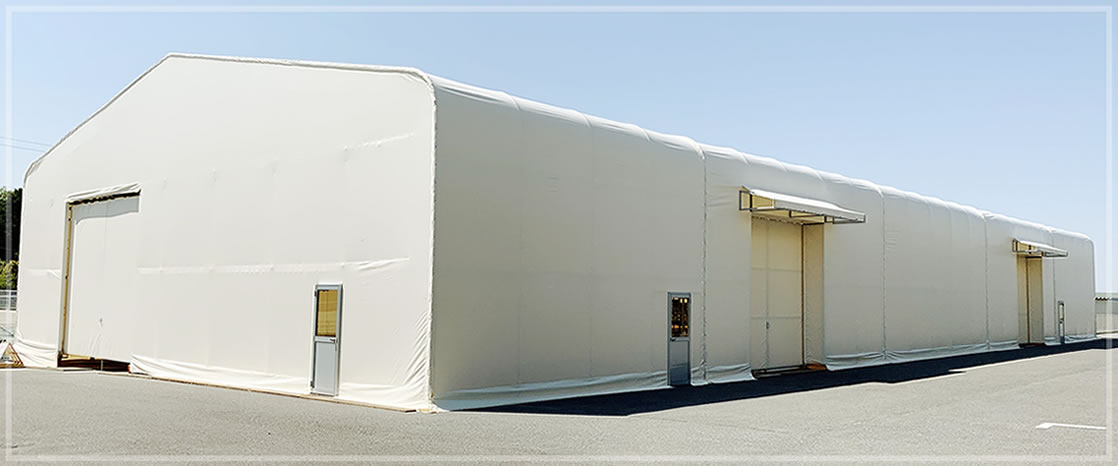 三重県松阪市にある『株式会社マルダイテント』では、テント倉庫、開閉式テント、店舗用装飾テントなどを全国対応で承っております。